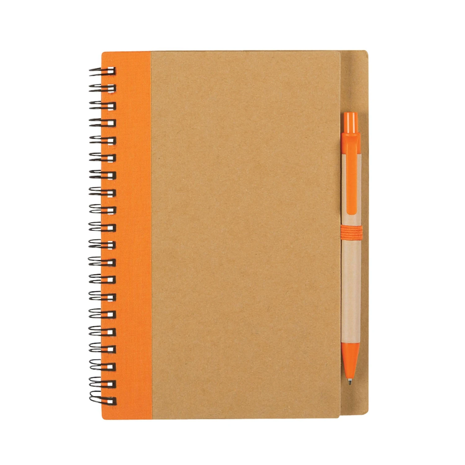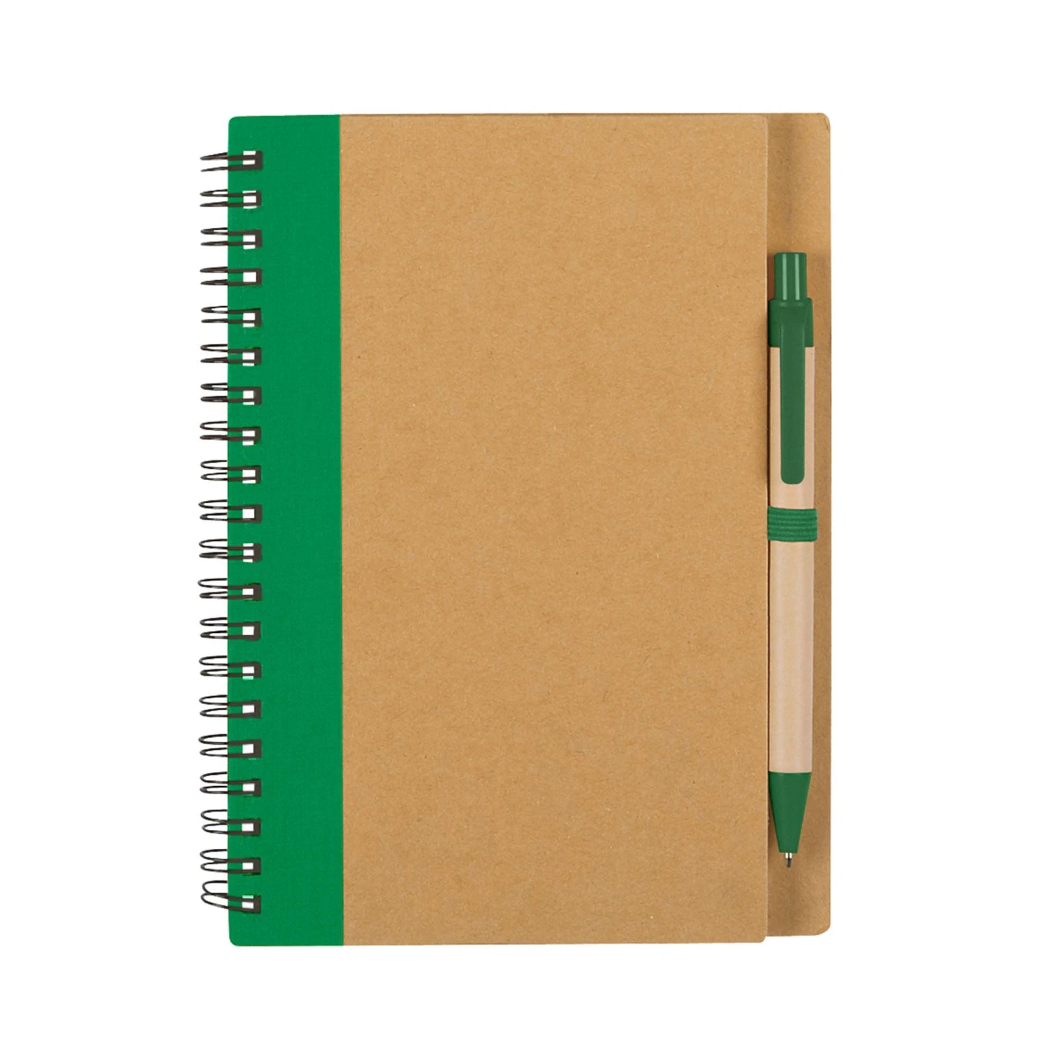 Add an environment-friendly touch to your next promotion with the Eco-Inspired Spiral Notebook & Pen! This set includes a spiral notebook with 80 lined pages, each bearing the Recycling symbol on the bottom corner, and a matching paper barreled pen. The notebook is equipped with an elastic pen loop and its front cover can be imprinted with your logo or message. The pen can also be imprinted at an additional cost. Excellent for use at offices, schools, and universities, and makes a nice promotional item at tradeshows, awareness campaigns, and fundraisers.