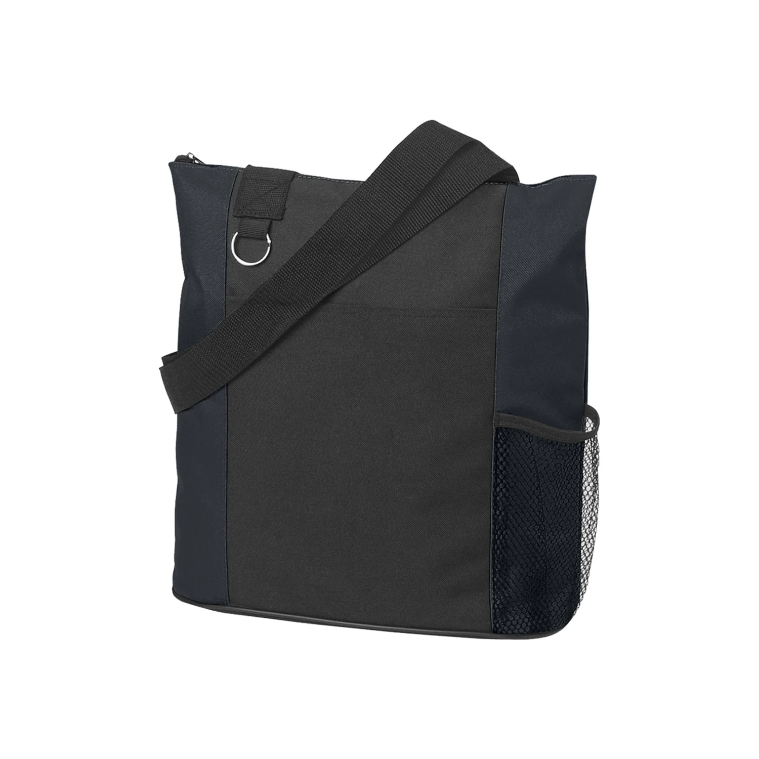 Here’s a fun way to carry your stuff around! This promotional tote bag is 26″ handles and is available in different colors with black trim. It’s made of 600D polyester with top zipper closure, front pocket, and side mesh pocket. It even has a split ring attachment for keys and small valuables too! Add your logo on this tote and hand it out as customer giveaway, as a gift bag, or promotional bag for tradeshows and marketing events.