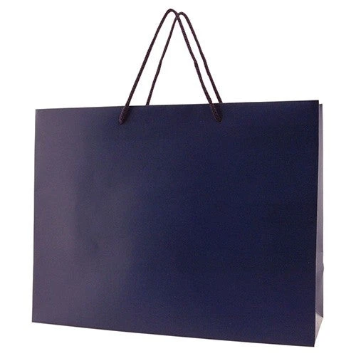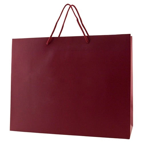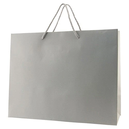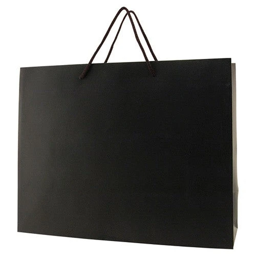 This fab eurotote spells style and class for your brand! It’s made from 180 GSM matte laminated paper with matching 18” cotton blend macramé handles, cardboard bottom insert, and reinforced fold-over top. This 13” x 5” x 10” tote is available in either dark or light colors to suit your shop or event’s mood or theme. Use it for your retail store or boutique’s everyday needs or as a giveaway carrier for product launching or marketing event. Personalize this tote with an imprint of your logo to complete that promotional look.