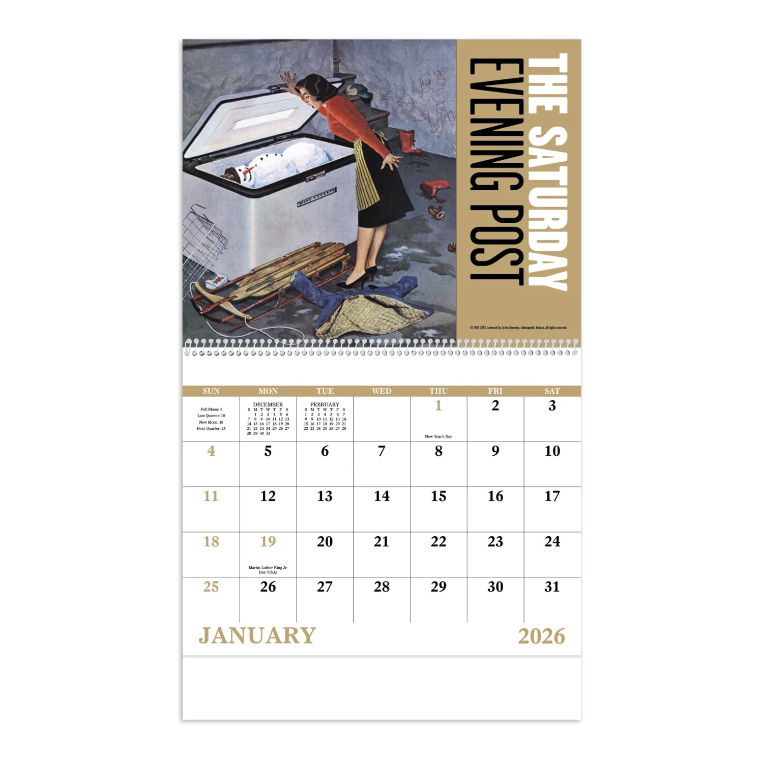 - 13-Month calendar with December month printed on backmount